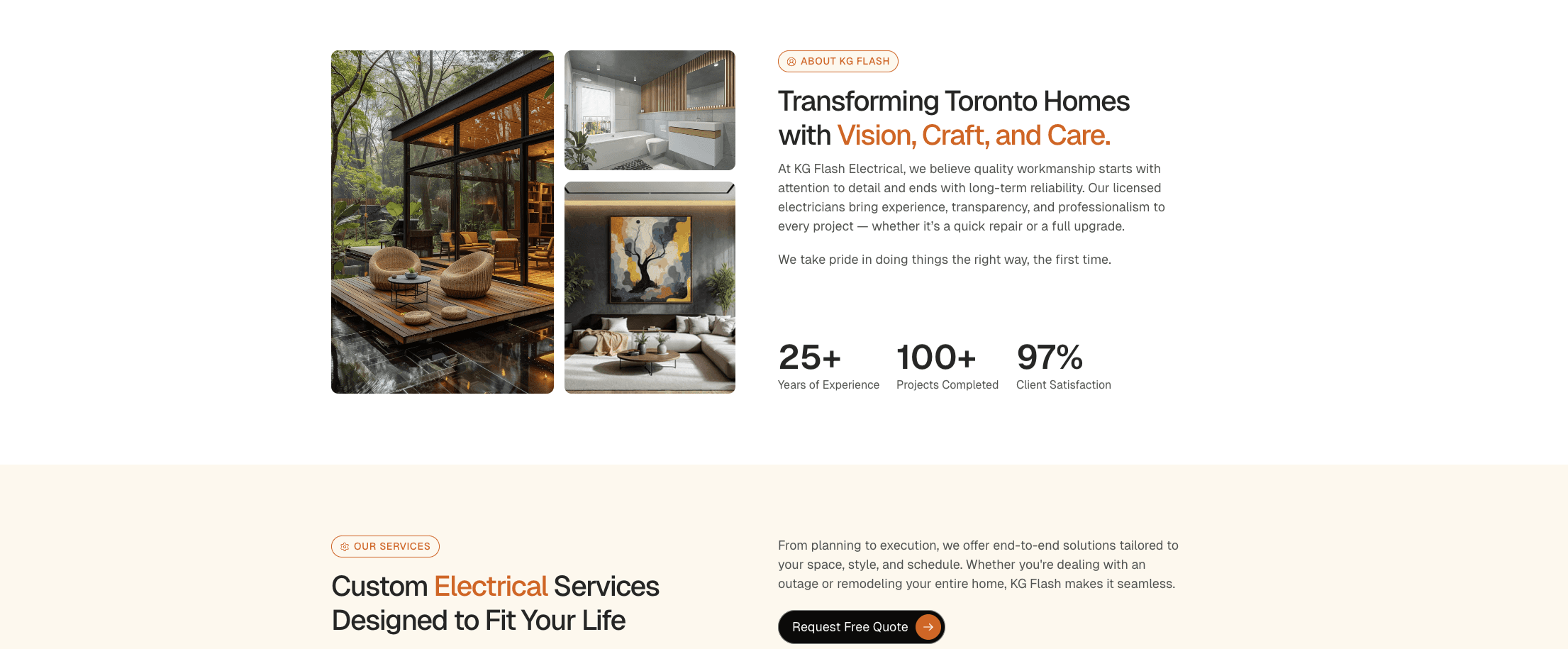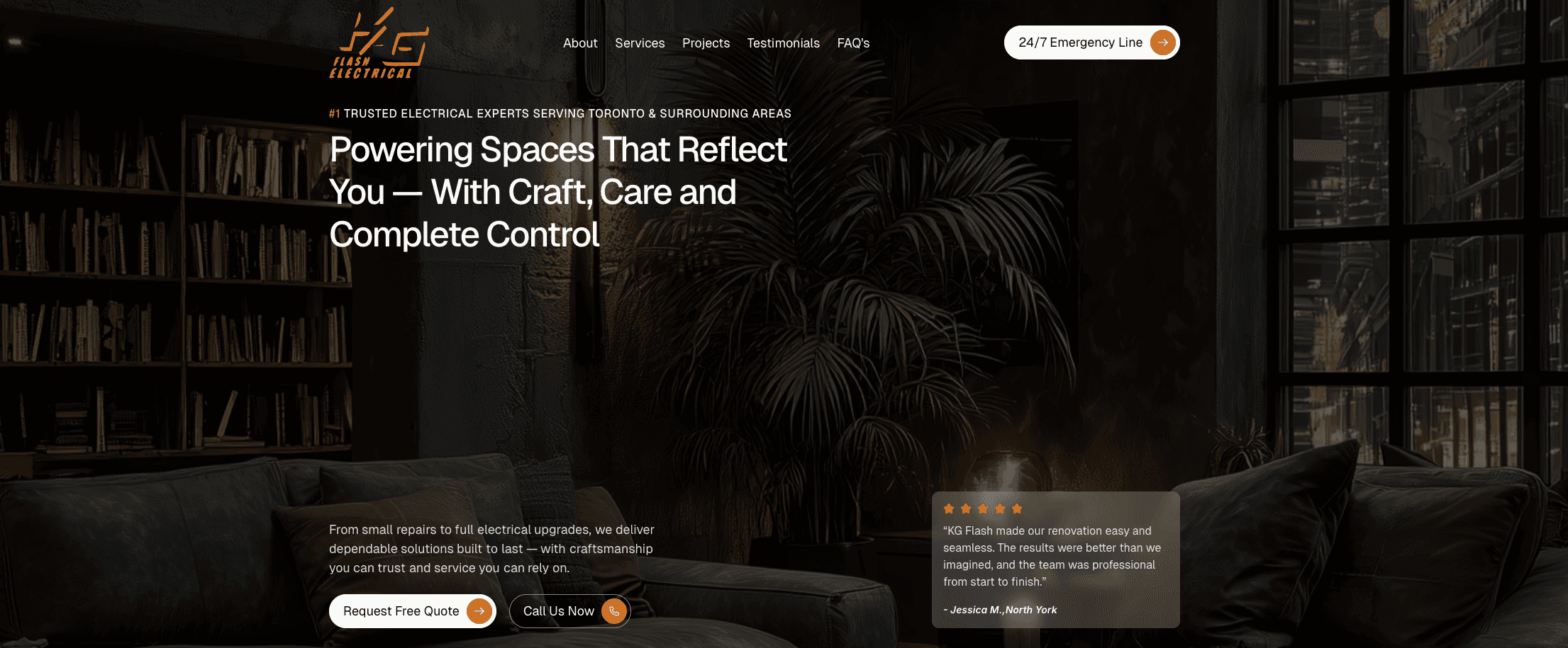 The final solution delivered a clean, professional website that positions KG Flash Electrical as a trustworthy local provider. Users can quickly understand services, verify credibility, and get in touch without friction.