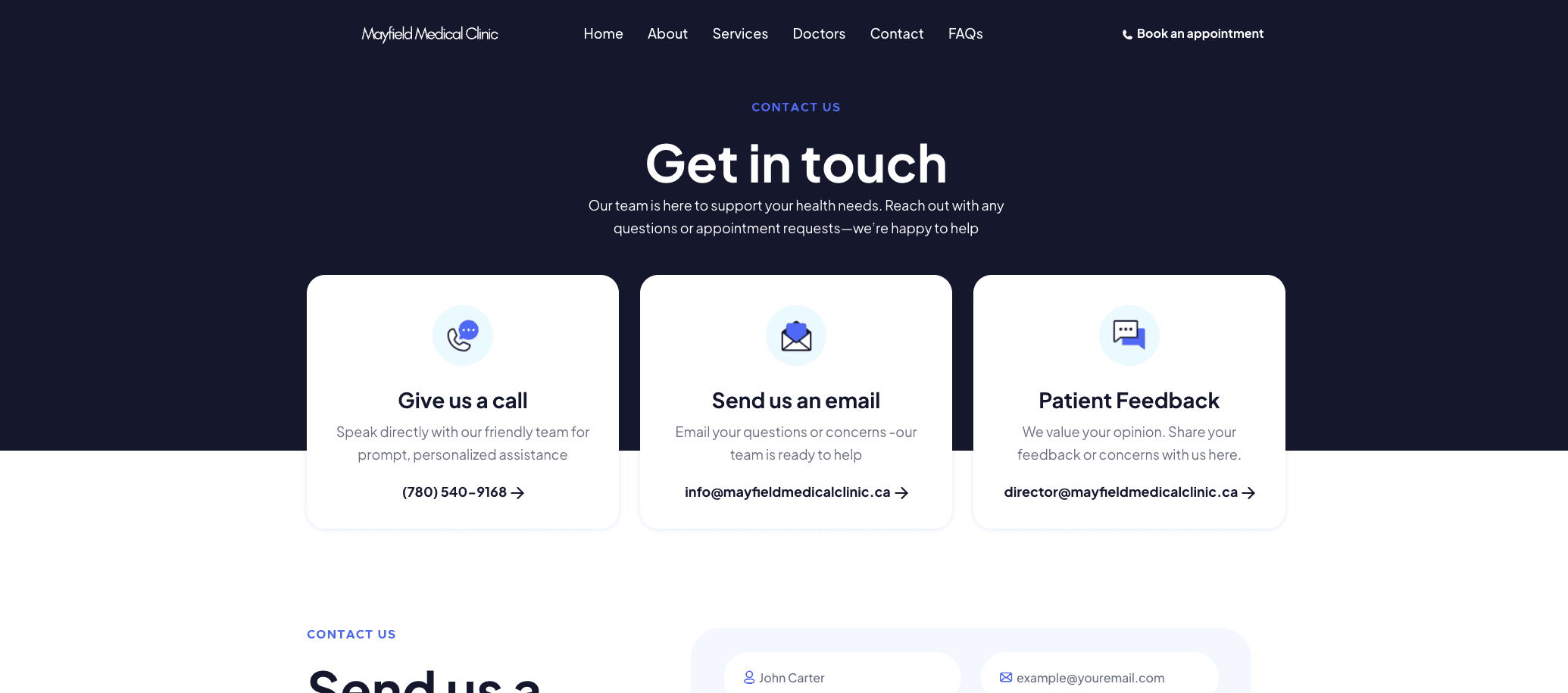We partnered with Mayfield Medical Clinic to design and deploy a comprehensive digital solution. The project included a fully custom website build with an intuitive CMS, local SEO targeting, and in-person photography—all aimed at elevating their online presence and patient experience.